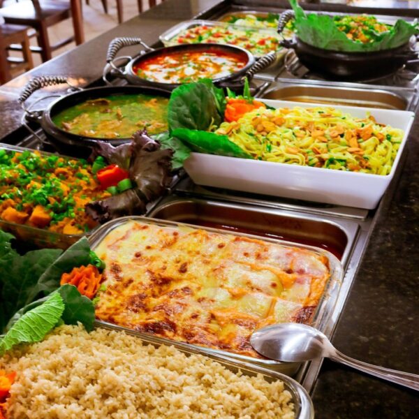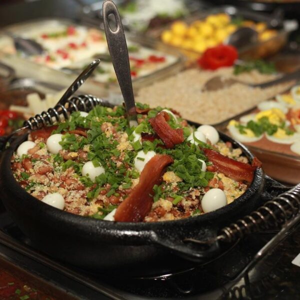Prepare-se para desfrutar de um buffet completo, repleto de opções que vão desde as tradicionais carnes nobres, como picanha e costela, até pratos típicos mineiros, como costelinhas e frango caipira. Nossos acompanhamentos são cuidadosamente selecionados, incluindo saladas frescas, arroz carreteiro, mandioca frita e muito mais. E se você é fã de sobremesas, não se preocupe, temos uma seleção irresistível de doces e frutas tropicais para finalizar sua refeição com um toque doce.